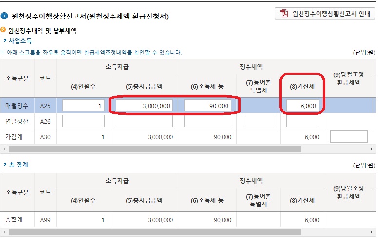 그럼 추가납부할 세액 or 환급받을 세액은 어떻게 해야하냐하면요.