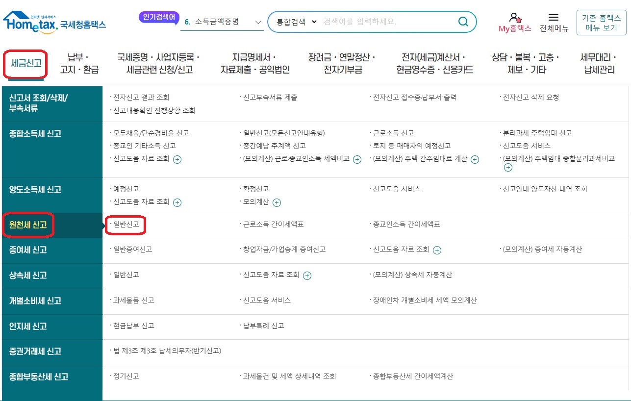 : ① 홈택스(www.hometax.go.kr) - [세금신고] - [원천세 신고] - [일반신고] - [수정신고]